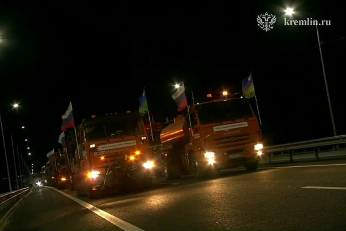 По мосту проследовали первые автомобили. kremlin.ru