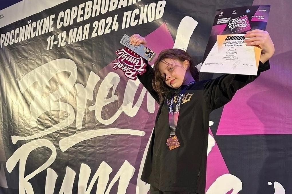 Среди девочек в возрасте 7-9 лет югорчанка на всероссийских соревнованиях по брейкингу BREAK RUMBLE заняла 3 место. Состязания среди танцовщиков проходили с 11 по 12 мая в Пскове. Всего там находились спортсмены из 34 регионов России.