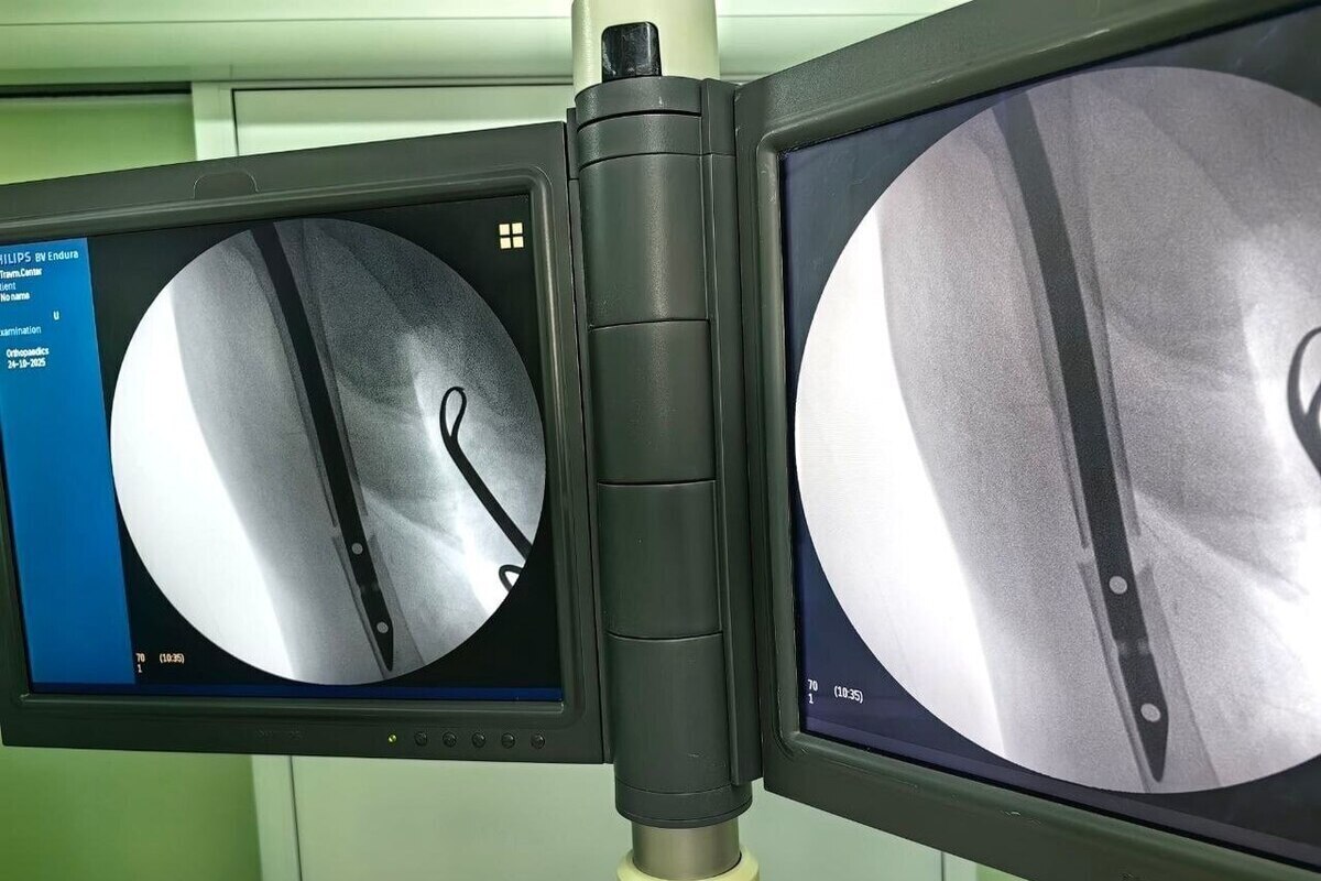 Врачи выполнили малоинвазивную операцию: в повреждённую кость установили специальный штифт. Такой метод позволяет минимизировать травматичность процедуры и ускорить восстановление пациента.